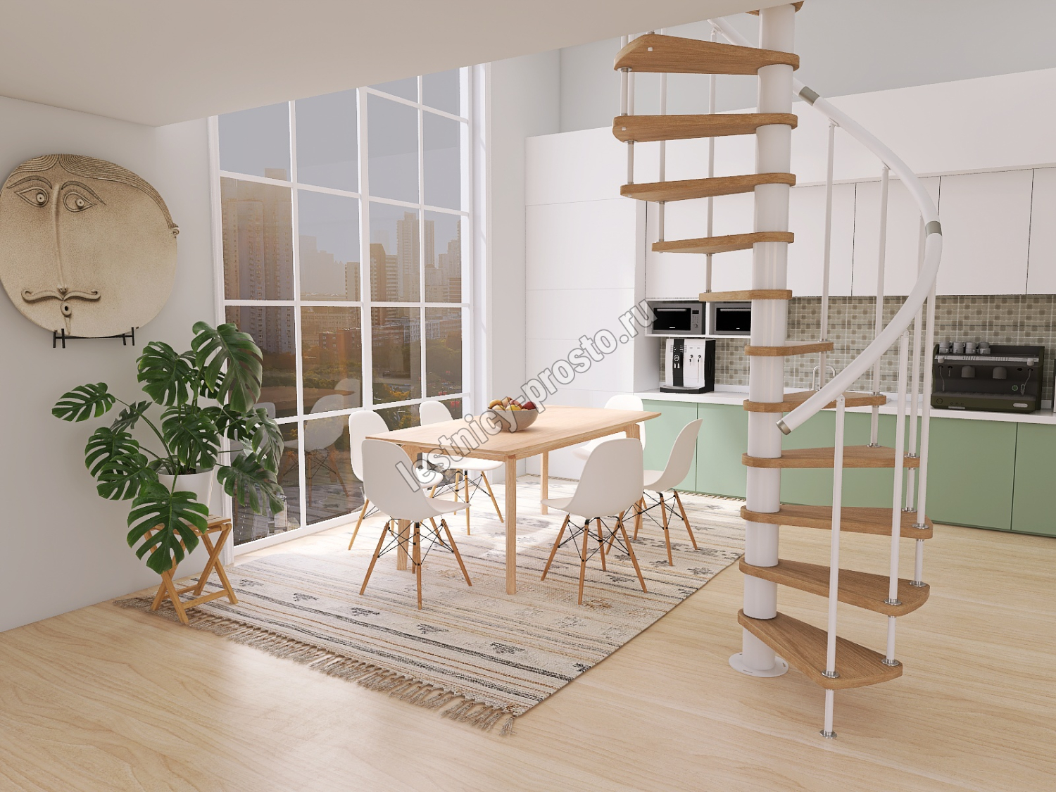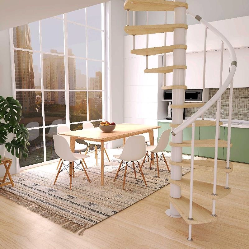 Винтовая лестница Prosto Spiral White D140см, h303.9-348,1 см, бук