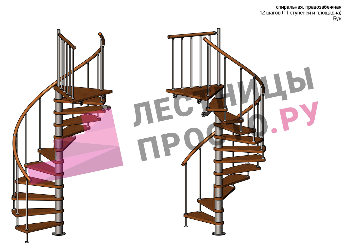 Правая, d=160см, 11 ступеней + площадка