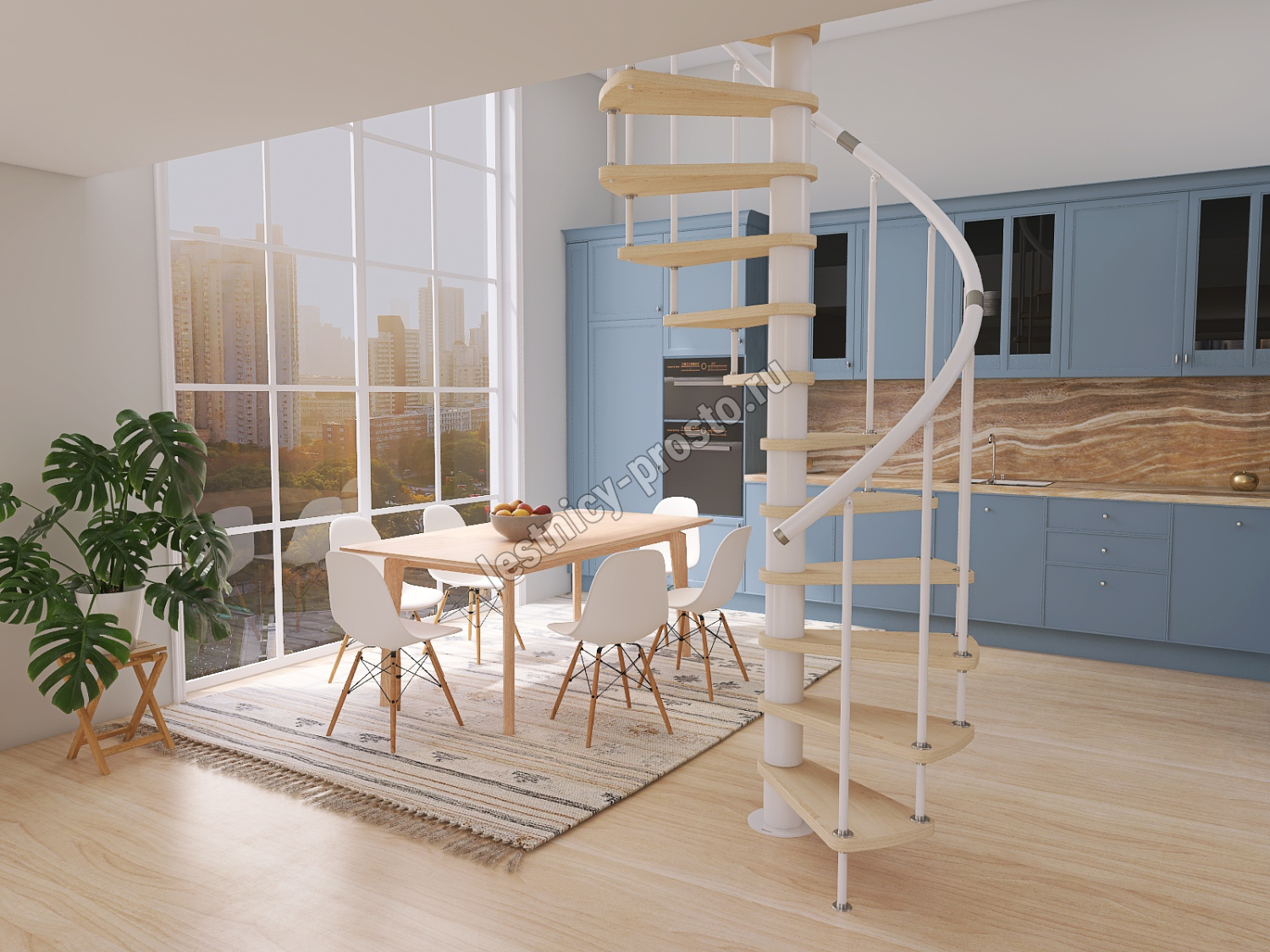 Винтовая лестница Prosto Spiral White D160см, h260.5-304.6 см, бук