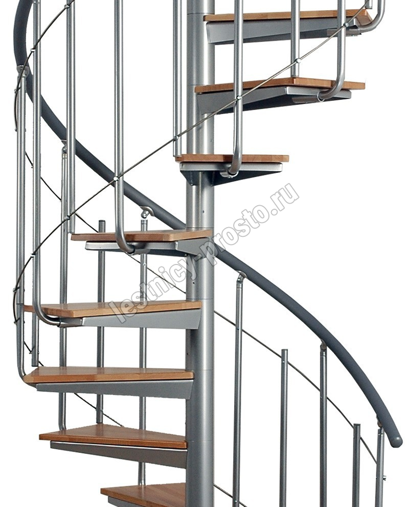 Винтовая лестница Solo vertical серебро, натуральный бук