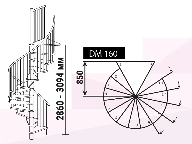 Высота лестницы 2860 - 3094 мм