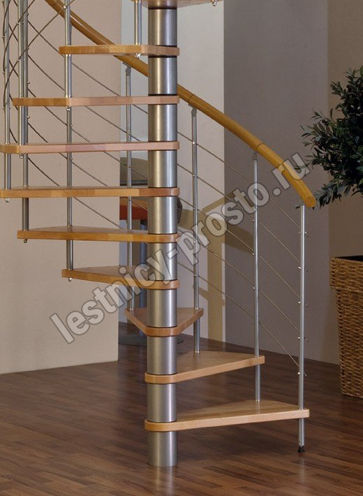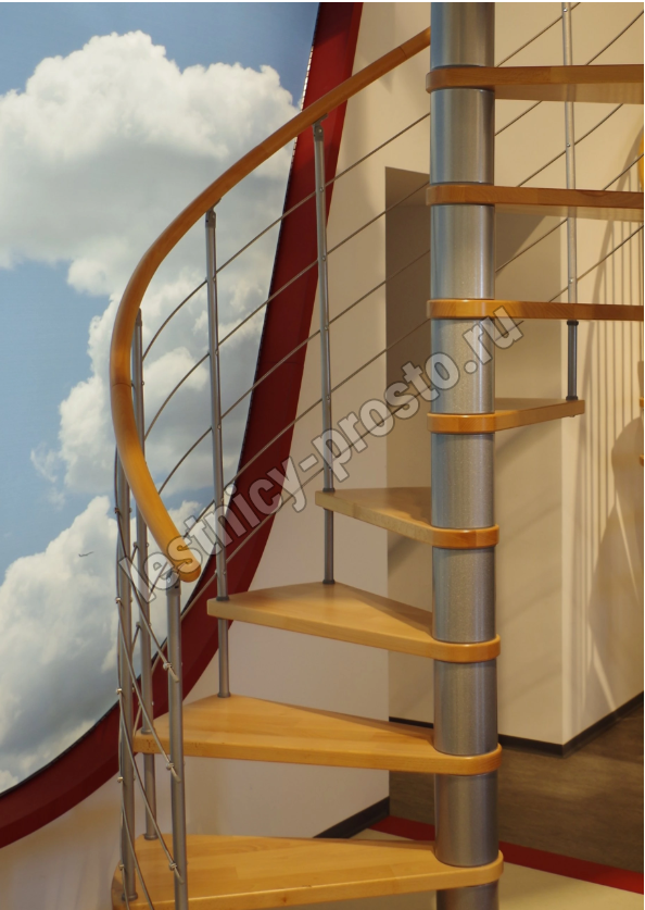 Винтовая лестница Venezia d140 см, серебро, дуб лакированный