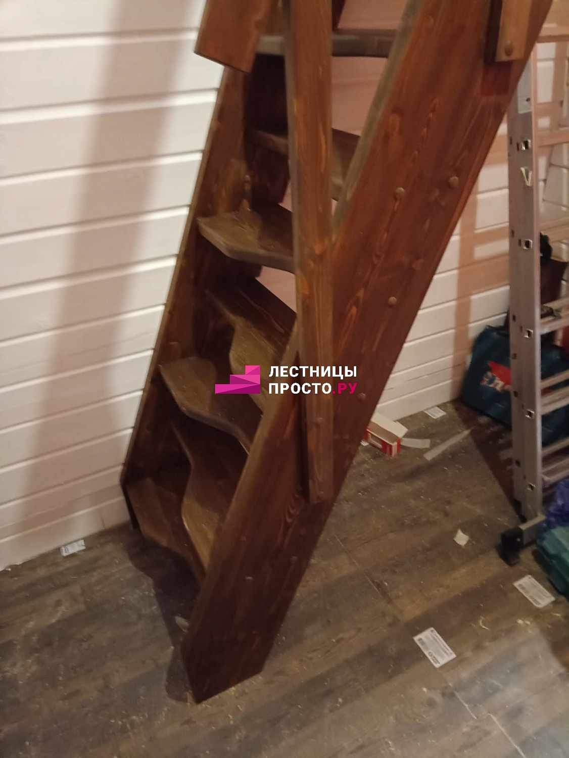 У нас есть похожая готовая лестница Лестница из сосны К-007М/40